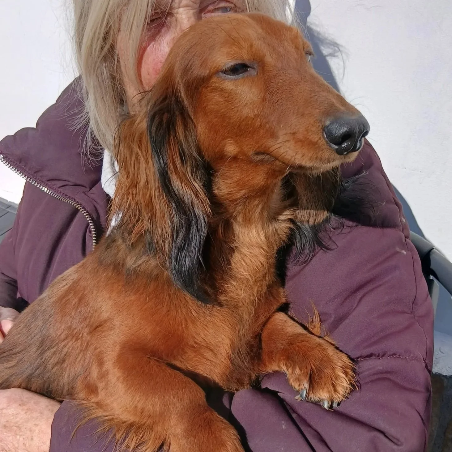 Nina is a stunning red long-haired Dachshund, 5 years old, and an absolute picture of elegance and charm. With her beautiful coat and calm, confident nature, she is the kind of dog who turns heads wherever she goes.